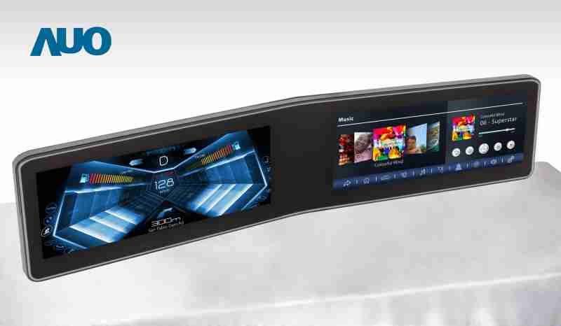 菠菜论坛 V 型曲面驾驶舱显示器,,,采全贴合拼接仪表板及中控台显示屏 |
